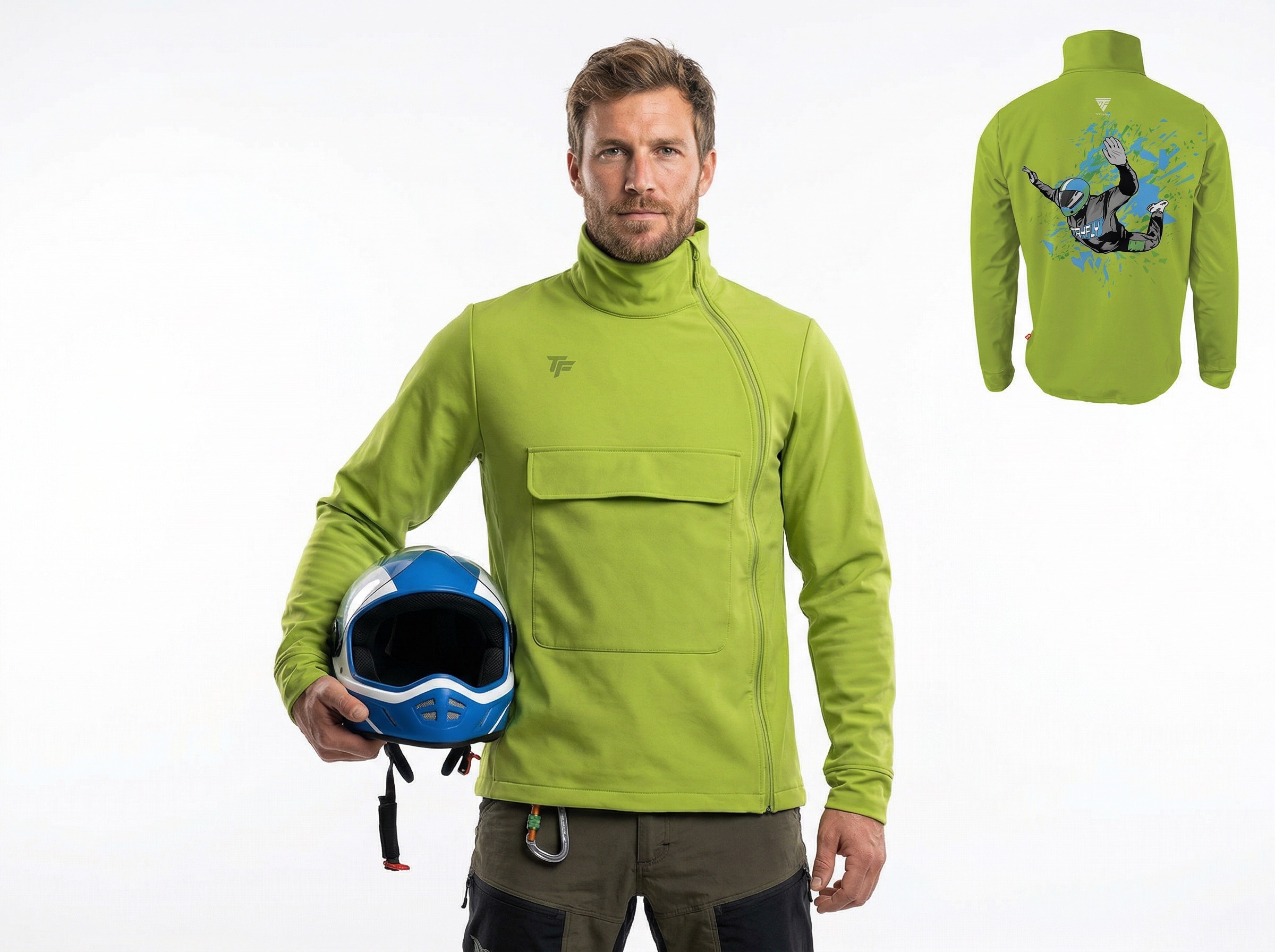 Our Jacket is a high class softshell fabric. It consists of three layers – a flexible outer fabric, membrane and fleece fabric. Thanks to this fabric is waterproof (3.000), breathable (500), windproof and very warm.