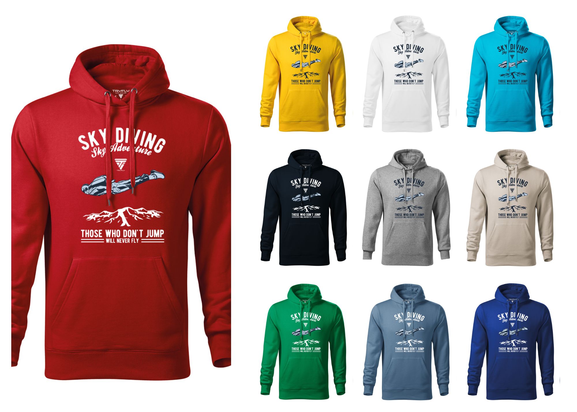 Our Cotton Skydiving Hoodie Sky Adventure were crafted with skydivers ’ demands in mind. We use top-quality materials, ensuring not only durability but also superior wearing comfort. The material feels pleasant to the touch and provides adequate thermal insulation, allowing you to enjoy your flights in any weather conditions.