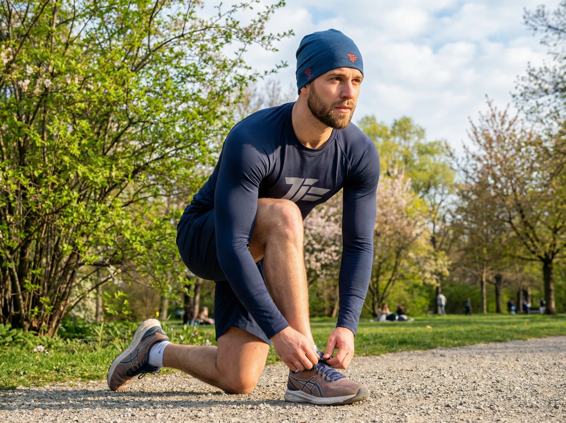 Inside the cuff you’ll find a thin, unnoticeable ICE NFC tag—it doesn’t poke, rub, or stick out, and it remains comfortable even under a helmet or during long runs. In an emergency, anyone can tap a phone to the NFC mark on the beanie to instantly open your “In Case of Emergency” profile.