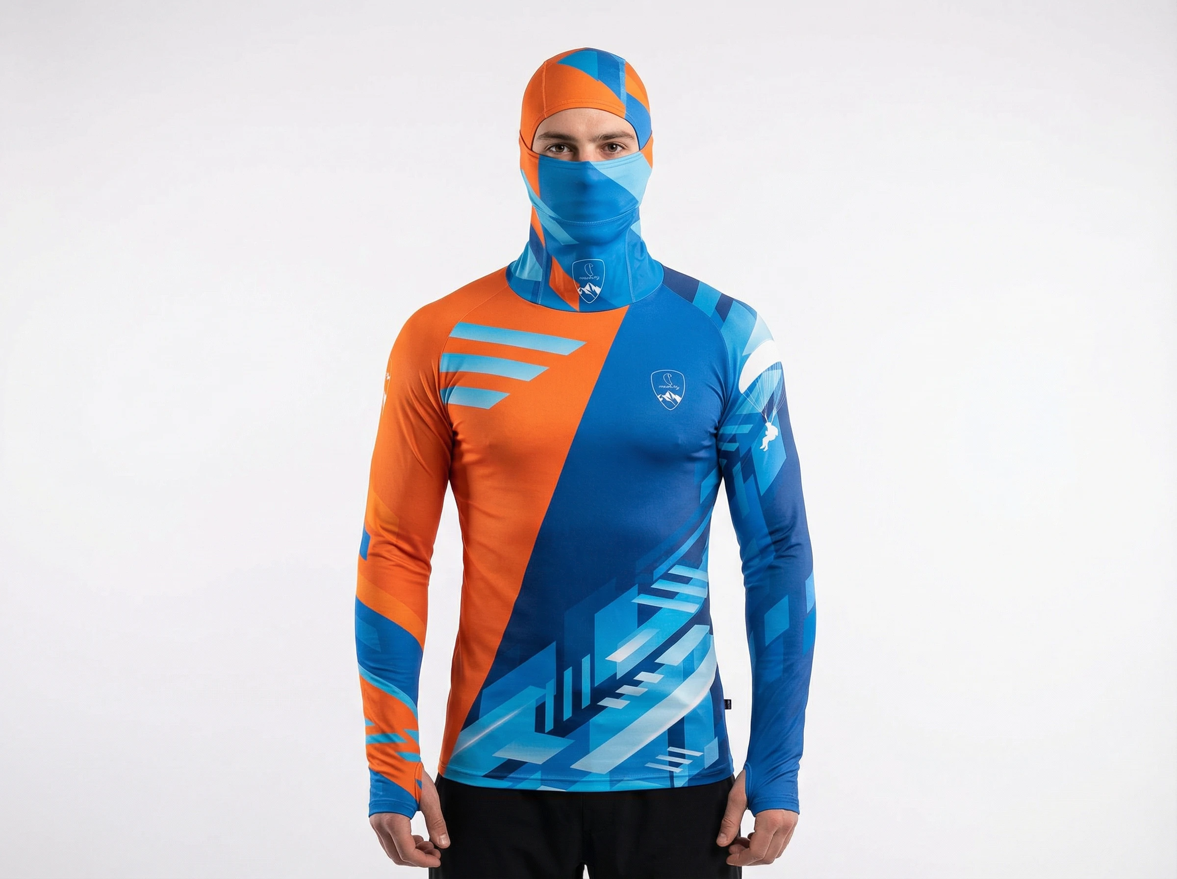 MOISTURE WICKING – BREATHABILITY – FREEDOM OF MOVEMENT – QUICK DRYING – INTEGRATED BALACLAVA – THUMB HOLE – SLIM FIT